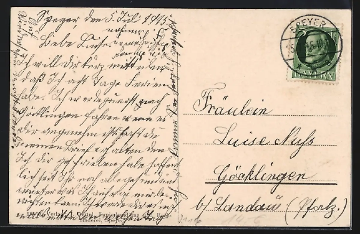 gelaufen 1915, Stempelspur, guter Zustand