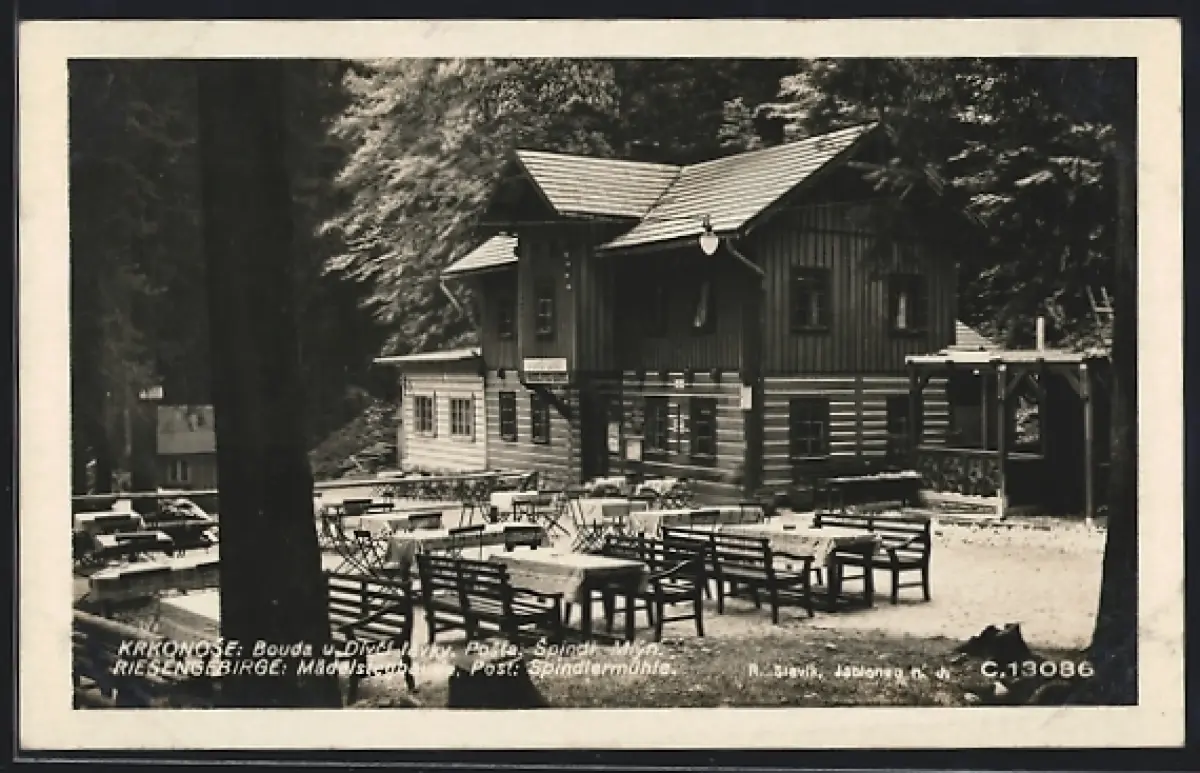 AK Spindlermühle /Riesengebirge, Mädelstegbaude mit Garten