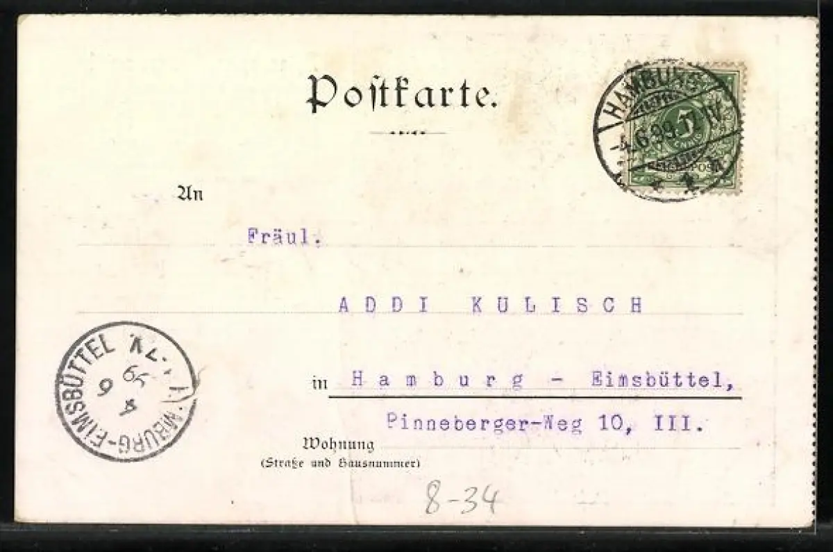 alte Ansichtskarte, gelaufen 1899, guter Zustand