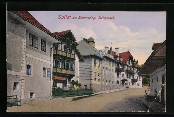 AK Spital /Semmering, Strassenpartie mit Rathaus