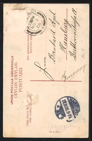 alte Ansichtskarte, gelaufen 1905, Briefmarke entfernt, rückseitig Oberflächenschaden, guter Zustand