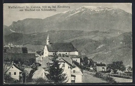 AK St. Corona am Wechsel, Teilansicht mit Schneeberg aus der Vogelschau