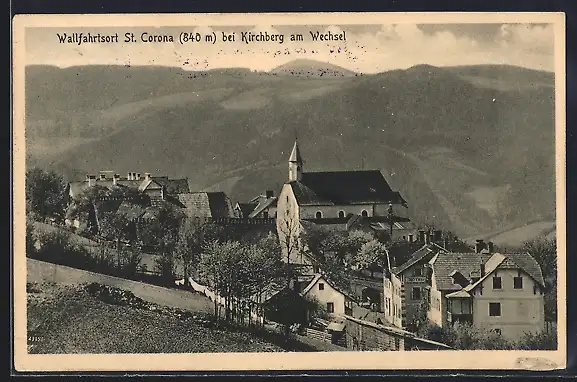 AK St. Corona am Wechsel, Totalansicht mit Bergpanorama