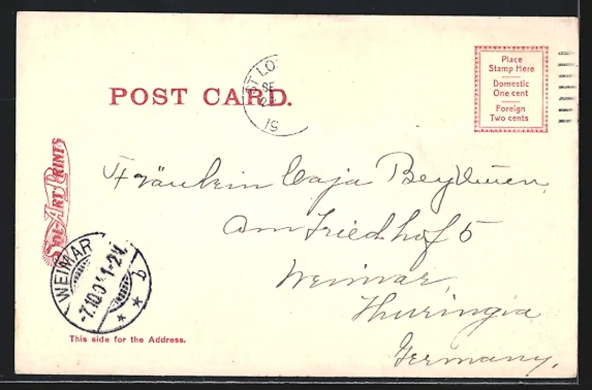alte Ansichtskarte, gelaufen, Briefmarke entfernt, guter Zustand