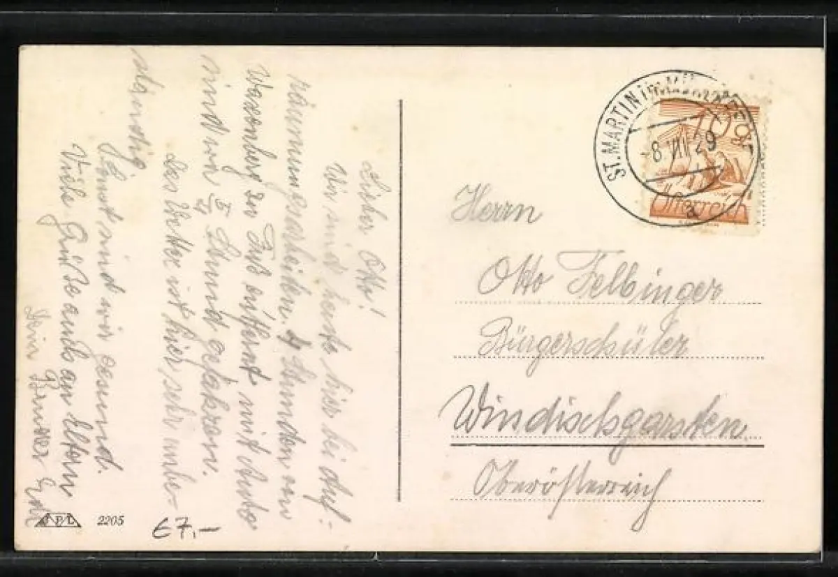 AK St. Martin i. Mühlkreis, Ortspartie am Feldrand