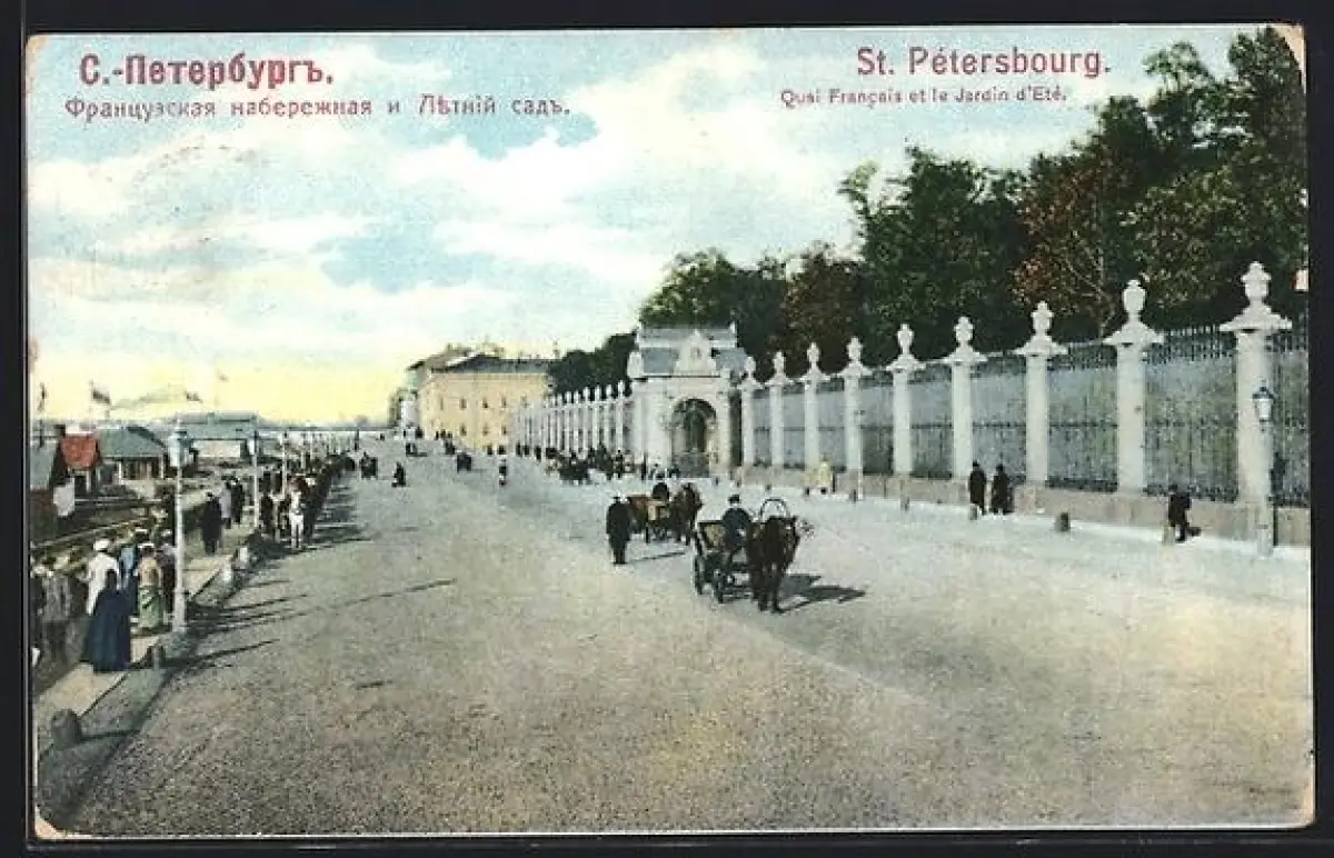 AK St. Pétersbourg, Quai Francais et le Jardin d`Eté