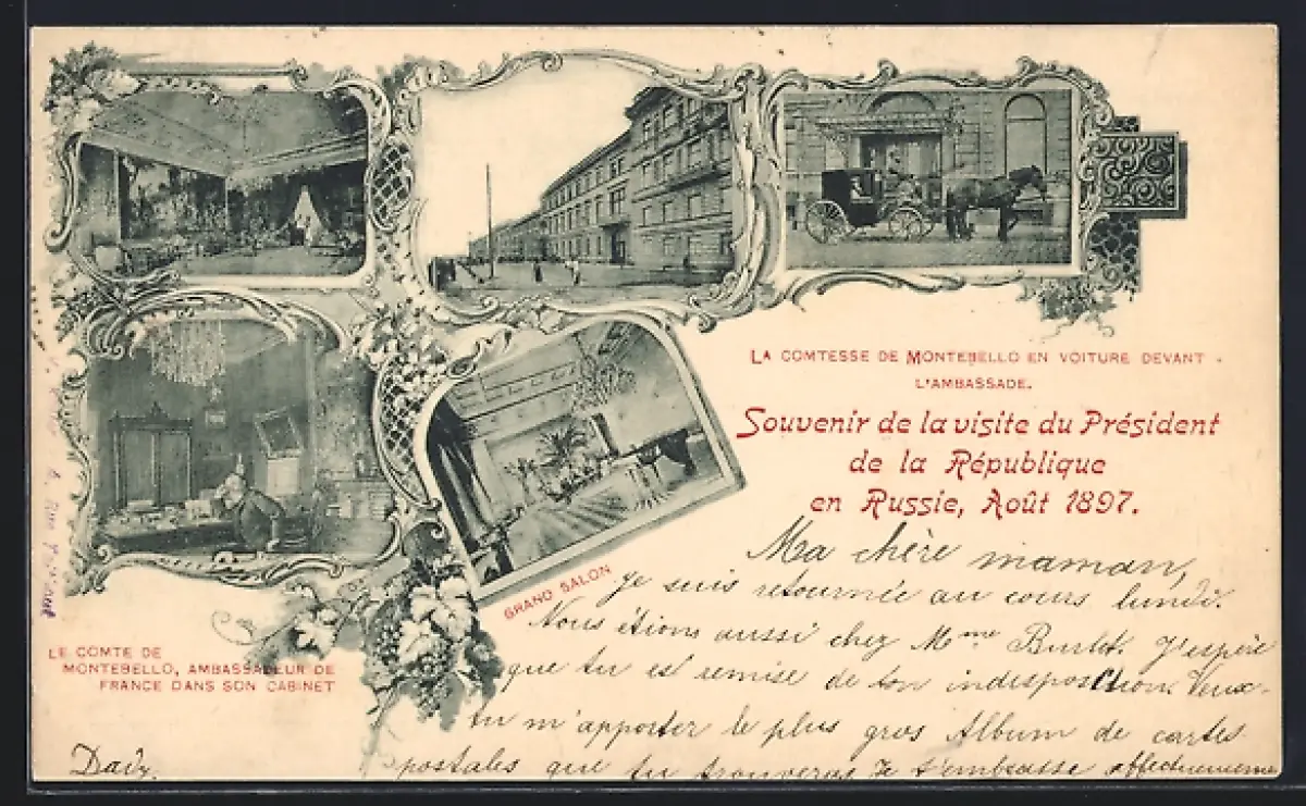 AK St. Petersburg, Grand Salon, Le Comte de Montebello, La Comtesse de Montebello devant L`Ambassade