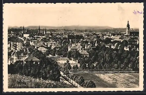 AK St. Pölten /N.-D., Totalansicht mit Strassenpartie