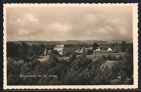 AK St. Pölten, Wasserburg, Blick auf den Ort umgeben von Bäumen