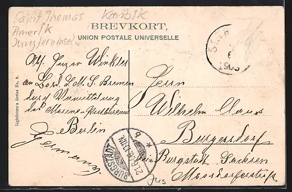 alte Ansichtskarte, gelaufen 1906, Briefmarke entfernt, rückseitig Oberflächenschaden, guter Zustand