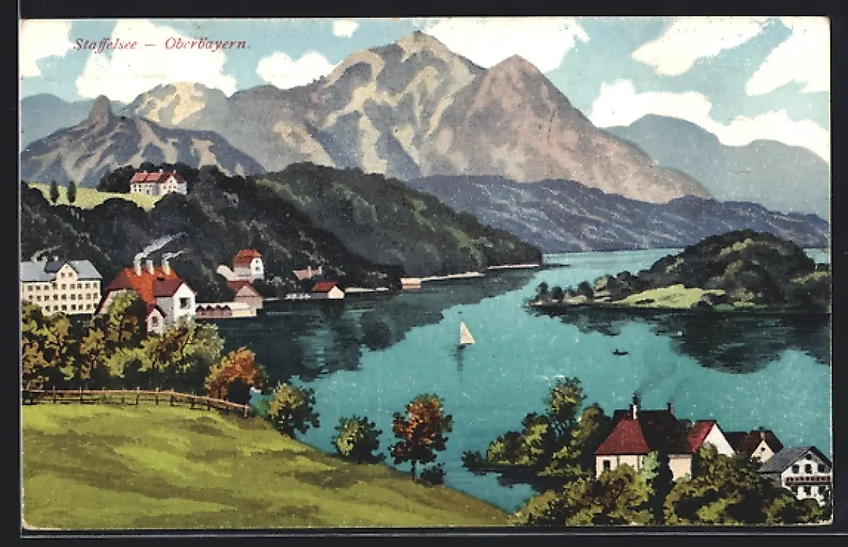 AK Staffelsee /Oberbayern, Panorama mit Gebirge