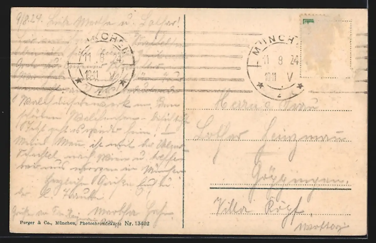 alte Ansichtskarte, gelaufen 1924, Briefmarke entfernt, guter Zustand
