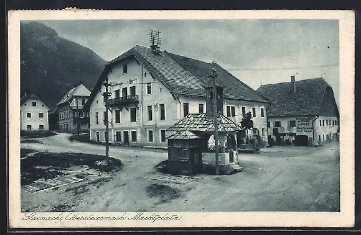 AK Stainach, Marktplatz mit Gasthof zur Post