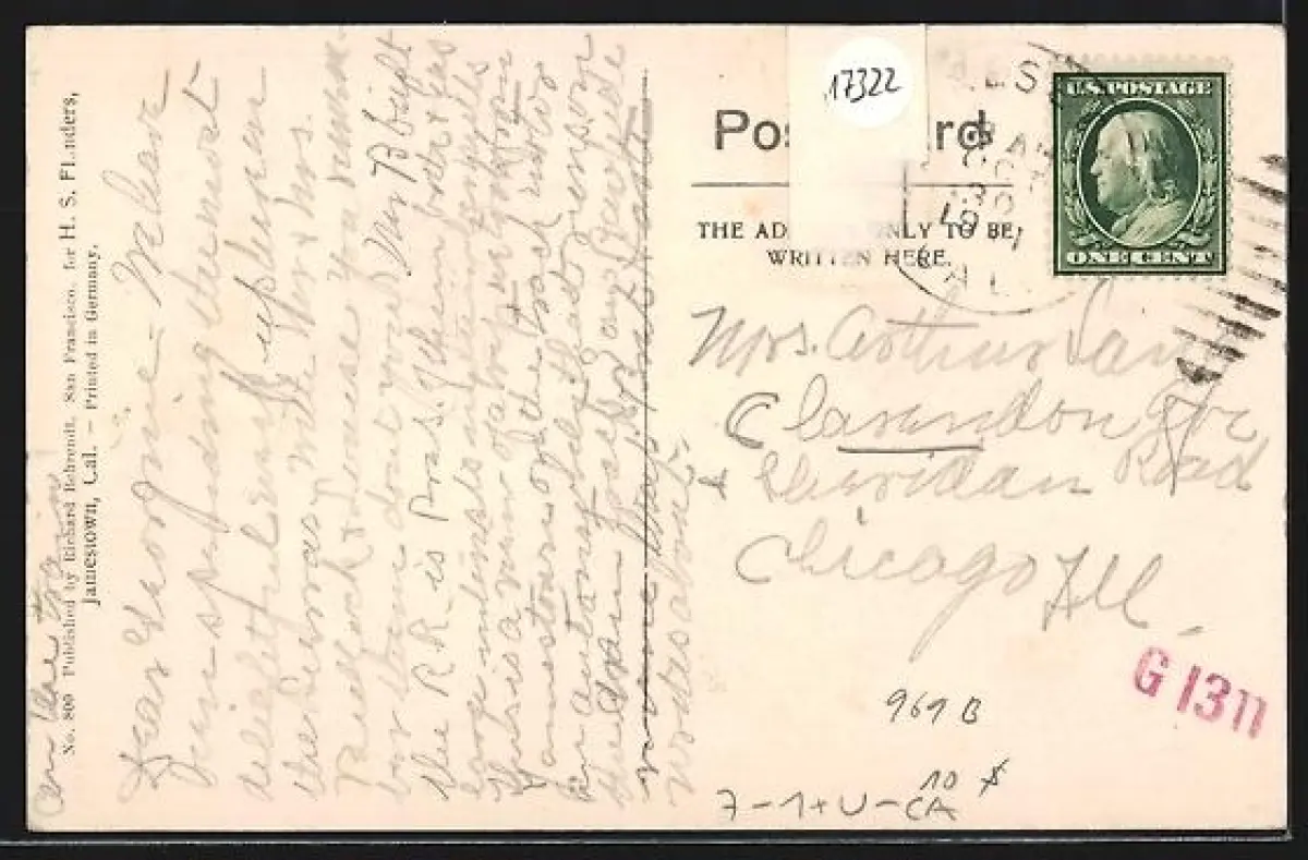 alte Ansichtskarte, gelaufen, rückseitig Klebe- und Papierreste, Eckknicke re. oben, guter Zustand