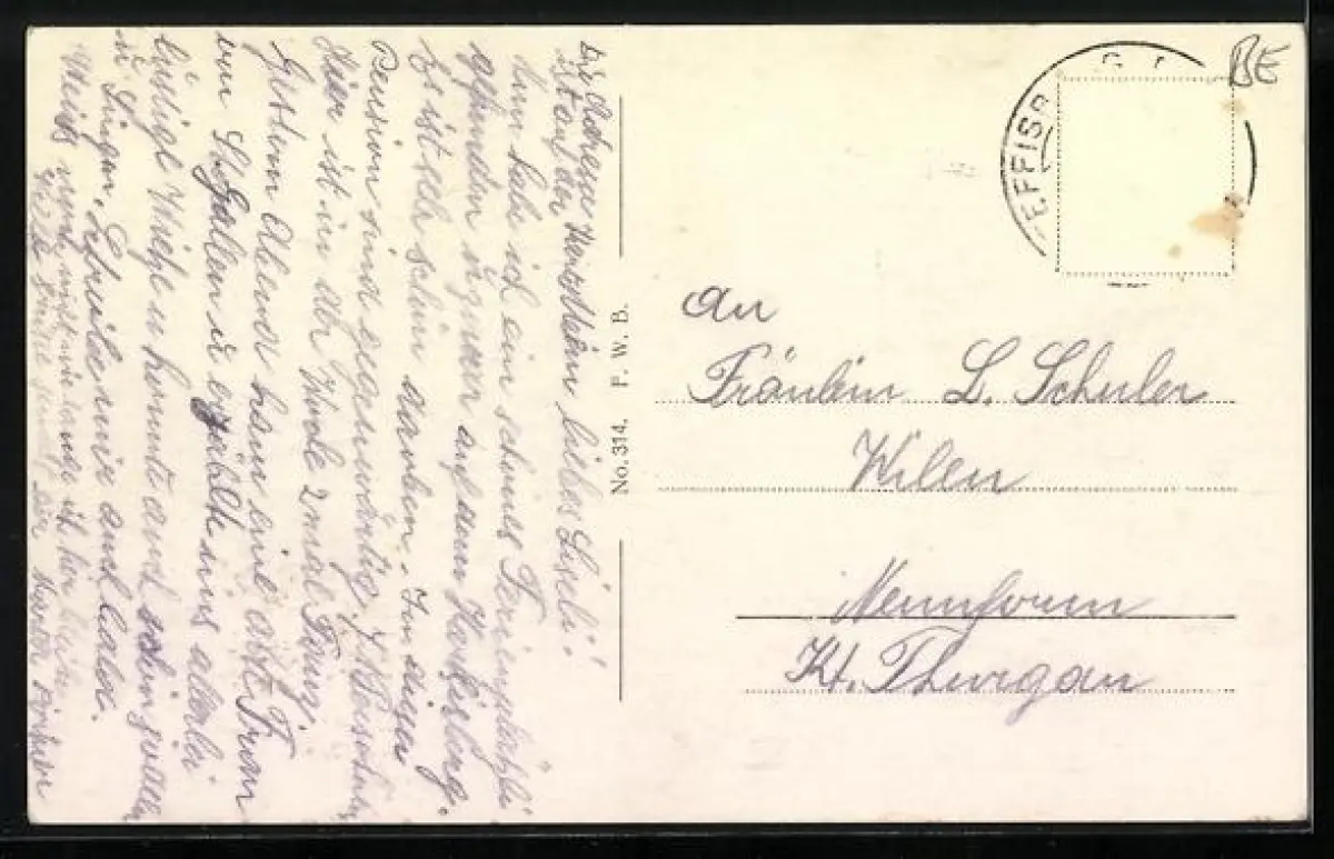 alte Ansichtskarte, gelaufen, Briefmarke entfernt, guter Zustand