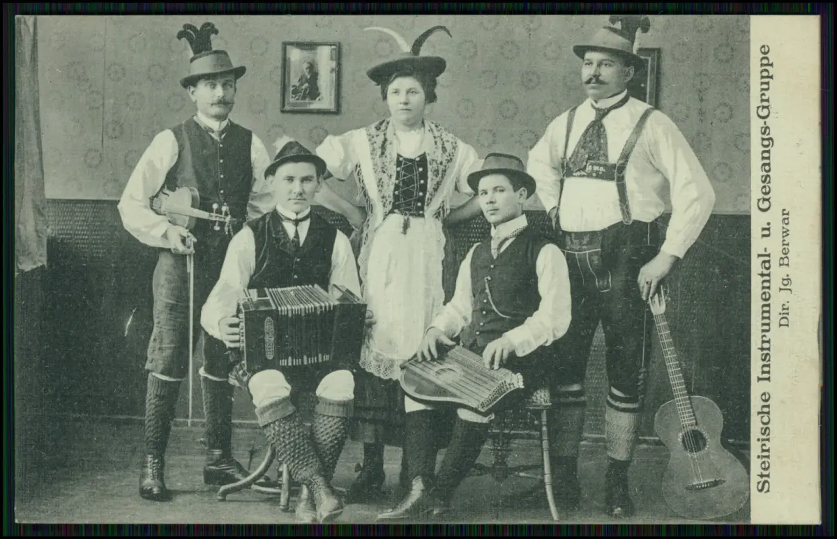 AK Steiermark Instrumental und Gesangsgruppe Musik Trachtenfoto Dir. Jg. Berwar