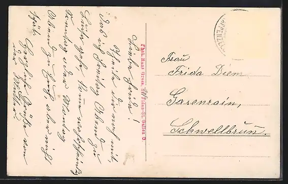 alte Ansichtskarte, gelaufen, Briefmarke entfernt, guter Zustand