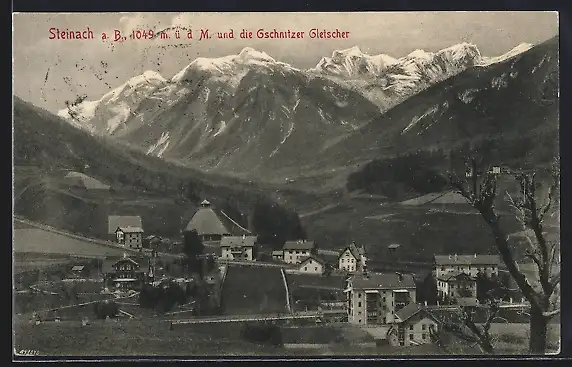 AK Steinach a. B., Ortsansicht mit Gschnitzer Gletscher