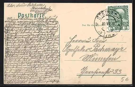 alte Ansichtskarte, gelaufen 1908, Stempelspur, guter Zustand