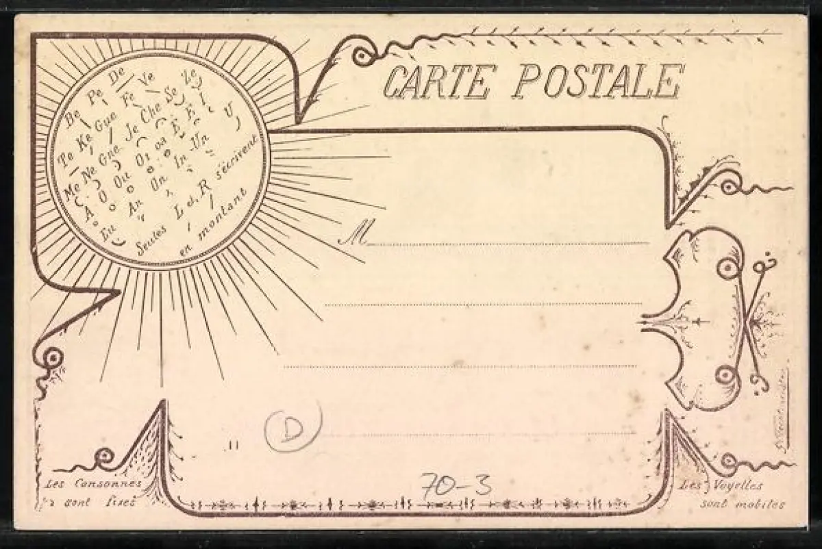 AK Stenographie von Emile Duploye, Füllhorn mit Alphabet