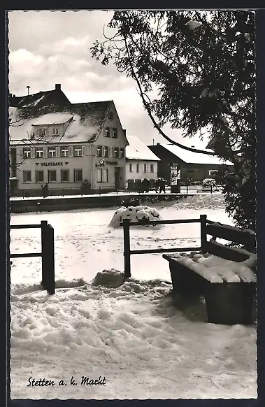 AK Stetten / kalter Markt, Verschneite Partie mit Volksbank
