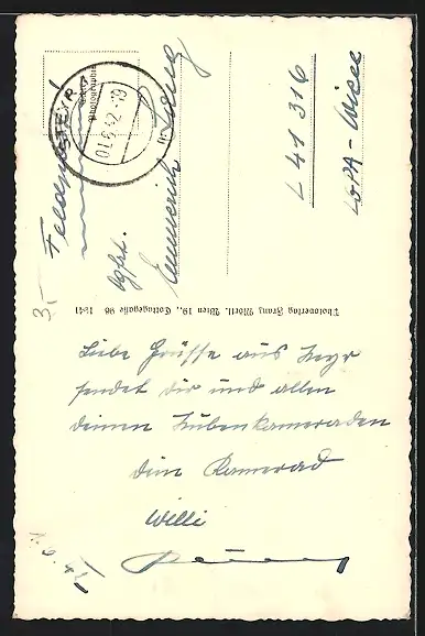 alte Ansichtskarte, gelaufen 1942, Bugspur oben li., guter Zustand