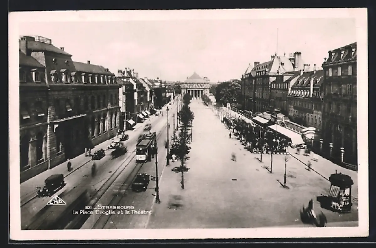 AK Strasbourg, La Place Broglie et le Théâtre, Strassenbahn