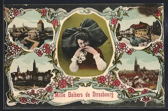 AK Strasbourg, Uferpartie, Ortspartie, Frau in Tracht