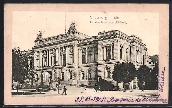 AK Strassburg i. Els., Landes-Ausschuss-Gebäude, Vorderansicht mit Denkmal