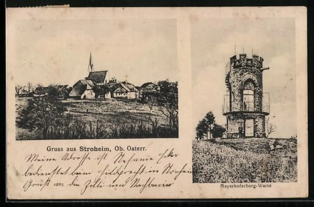 AK Stroheim /O.-Ö., Mayerhoferberg-Warte, Ortsansicht