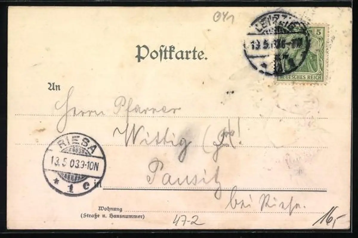 alte Ansichtskarte, gelaufen 1903, Stempelspur, guter Zustand