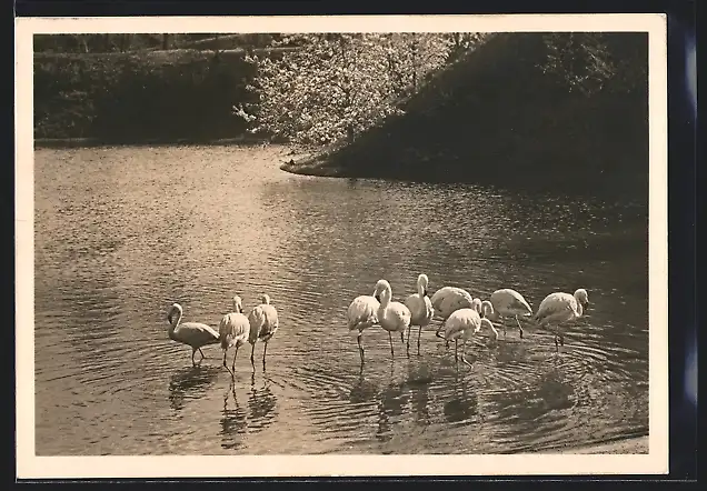 AK Stuttgart, Ausstellung Reichsgartenschau 1939, Flamingogruppe am grossen See