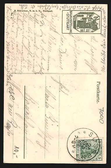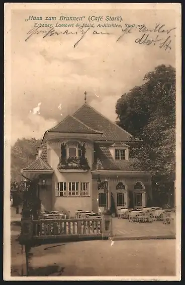 AK Stuttgart, Bauausstellung 1908, Haus zum Brunnen, Café Stark