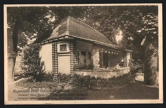 AK Stuttgart, Bauaustellung 1908, Kegelstube einer Garten-Kegelbahn