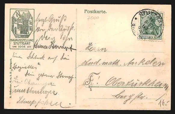 alte Ansichtskarte, gelaufen 1908, guter Zustand