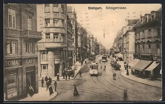 AK Stuttgart, Königstrasse mit Strassenbahnen aus der Vogelschau