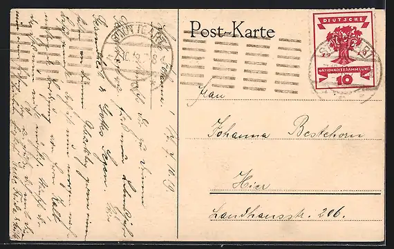 alte Ansichtskarte, gelaufen 1919, Stempelspur, guter Zustand
