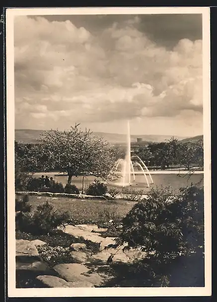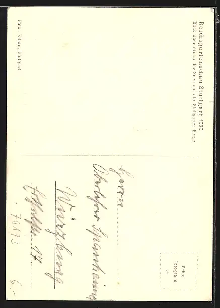 AK Stuttgart, Reichsgartenschau 1939, Blick über einen der Seen auf die Stuttgarter Berge, Ausstellung
