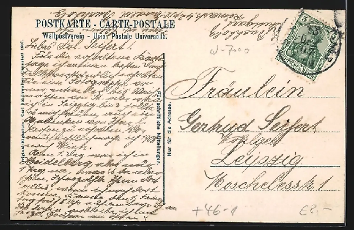 alte Ansichtskarte, gelaufen 1907, guter Zustand