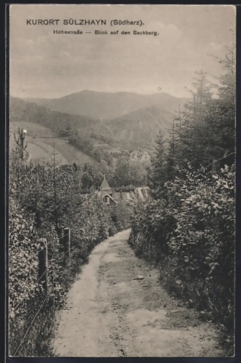 AK Sülzhayn /Südharz, Hohenstrasse, Blick auf den Sackberg