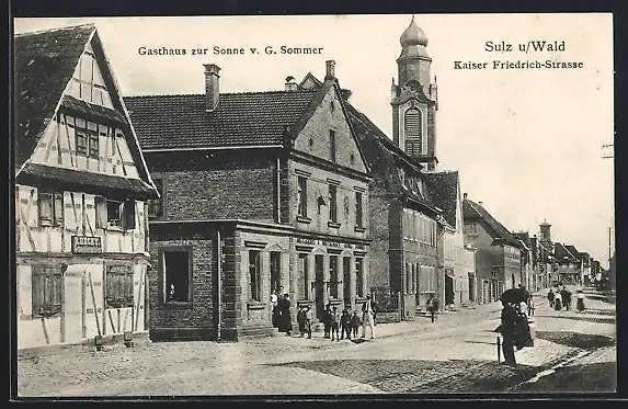 AK Sulz, Kaiser Friedrich-Strasse mit Gasthaus zur Sonne