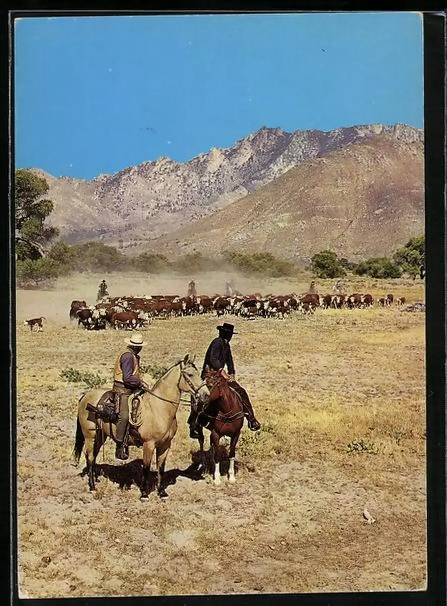 AK Szene aus der Serie Bonanza mit den Cartwrights auf Pferden