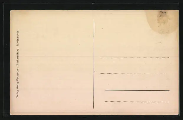 Personenbezogene Daten auf der Rückseite der Karte wurden durch blauen Textmarker unkenntlich gemacht. Die blauen Stellen sind auf die Vorderseite durchgeweicht und wirken sich negativ auf das Postkartenfoto aus