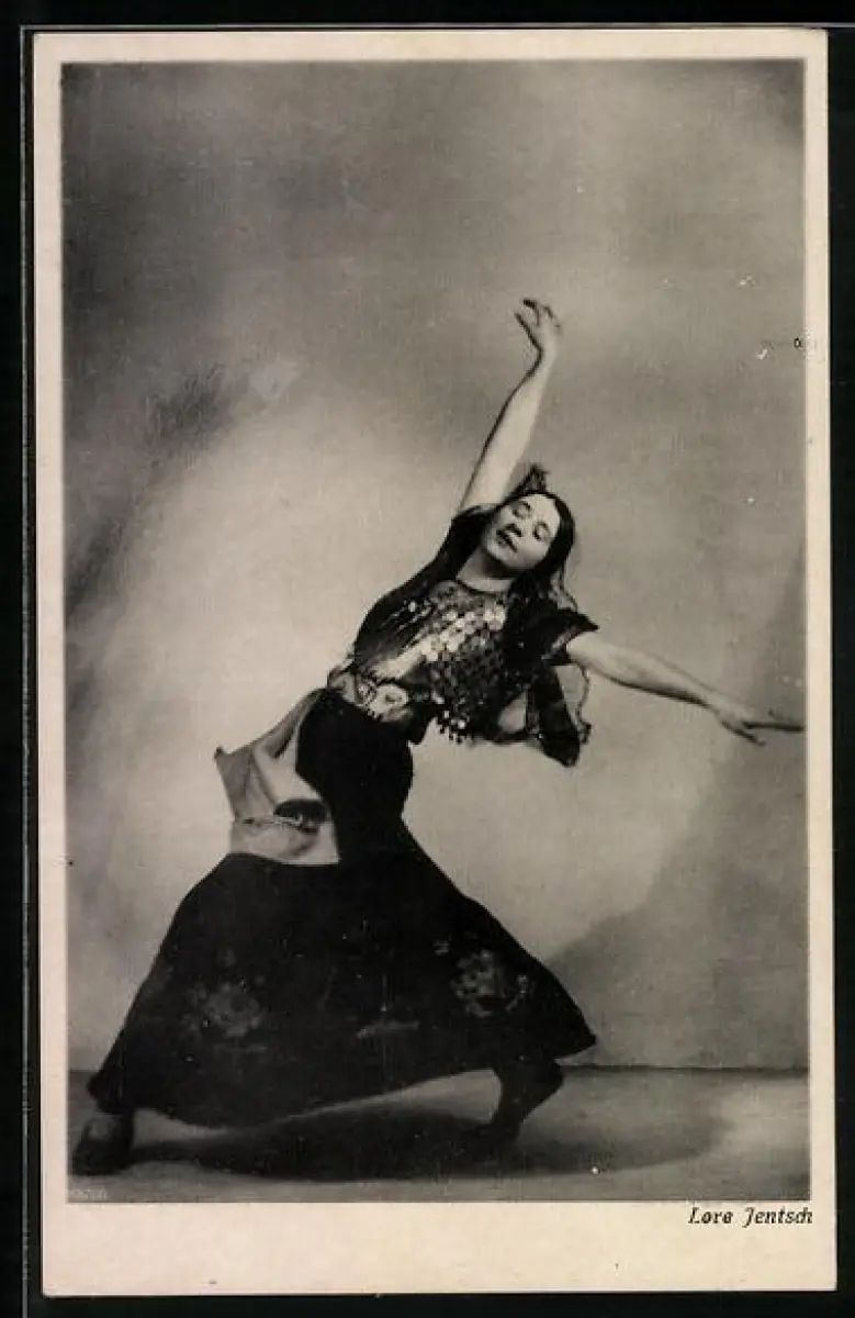 AK Tänzerin Lore Jentsch mit ausgestreckten Armen tanzend
