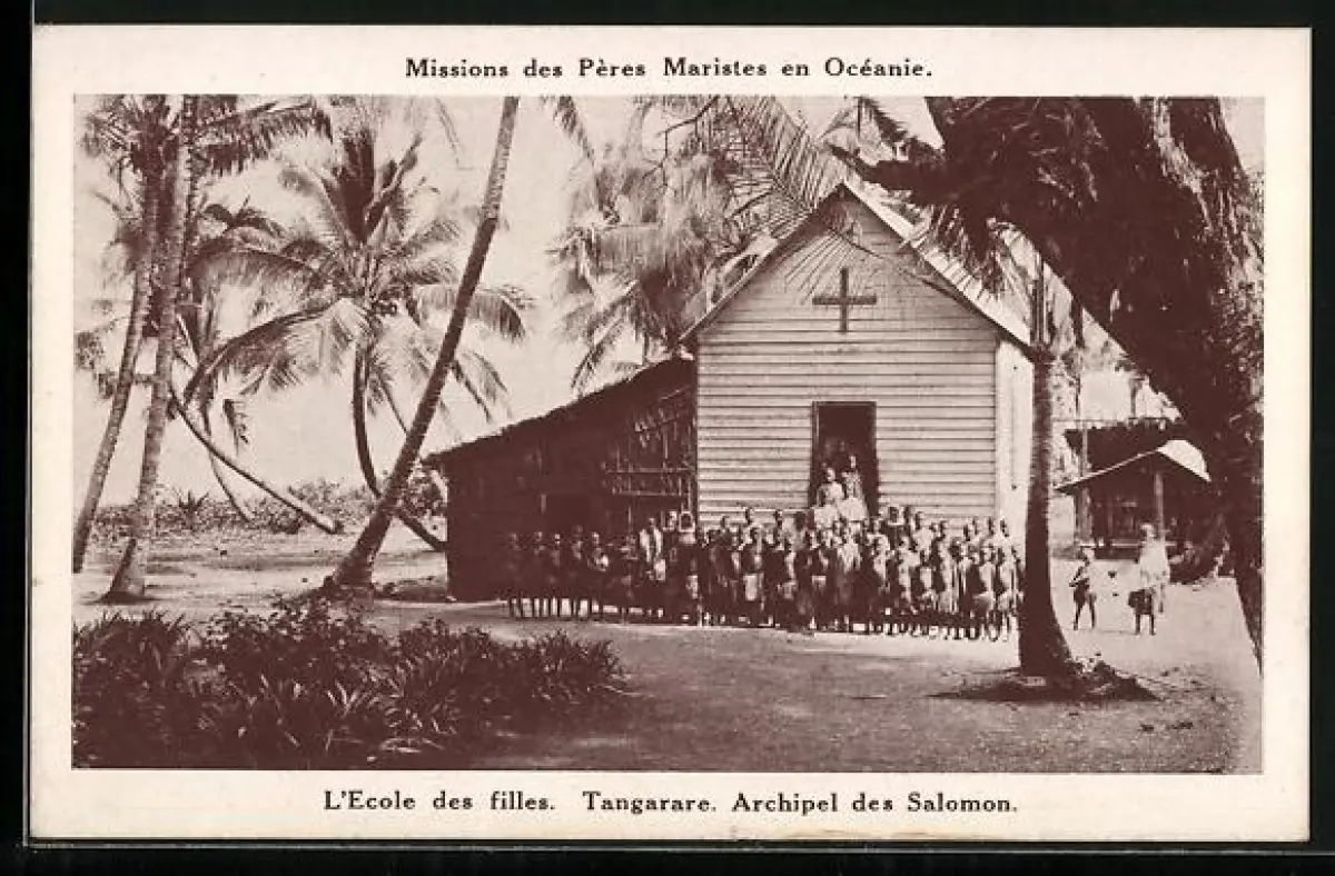 AK Tangarare, Missions Iles Salomon, L`Ecole des filles, Kinder vor der Missionsschule