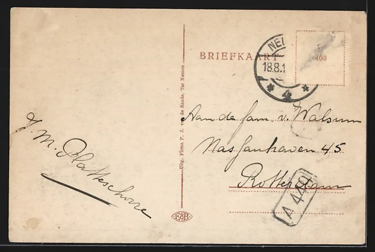 alte Ansichtskarte, gelaufen, Briefmarke entfernt, guter Zustand