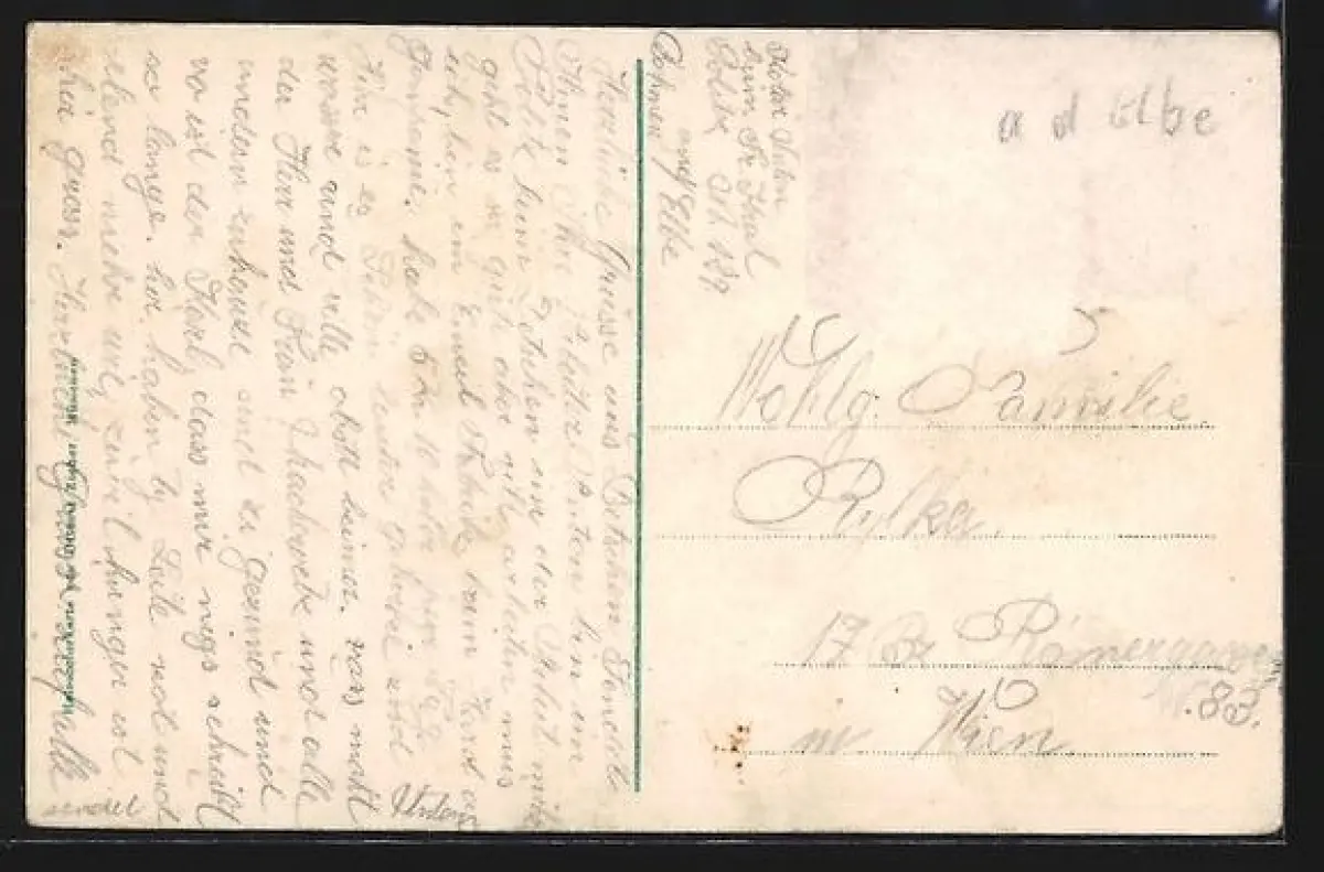alte Ansichtskarte, gelaufen, Briefmarke entfernt, rückseitig Oberflächenschaden, guter Zustand