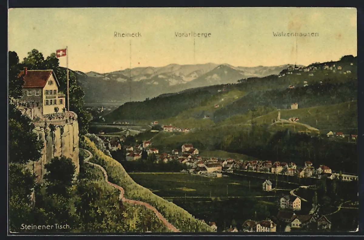 AK Thal /SG, Rheineck, Panoramaansicht vom Steinernen Tisch mit Vorarlbergen und Walzenhausen