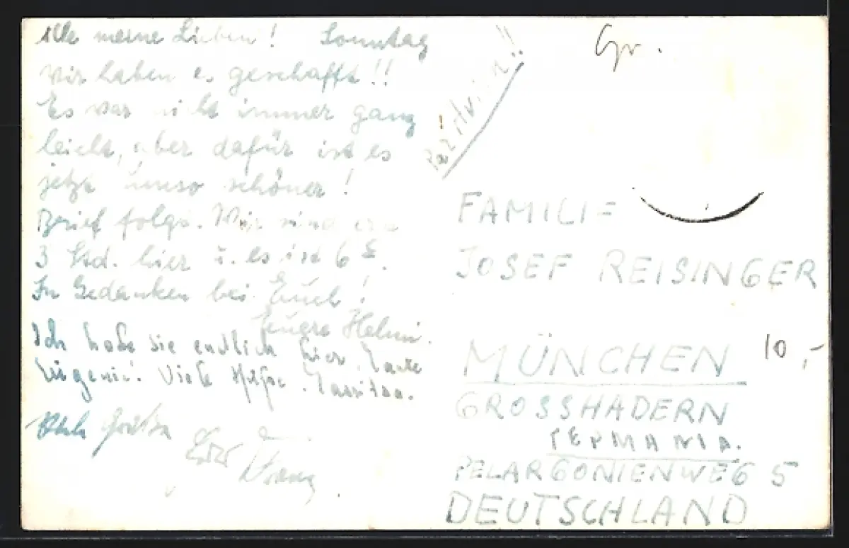 alte Ansichtskarte, gelaufen, Briefmarke entfernt, guter Zustand