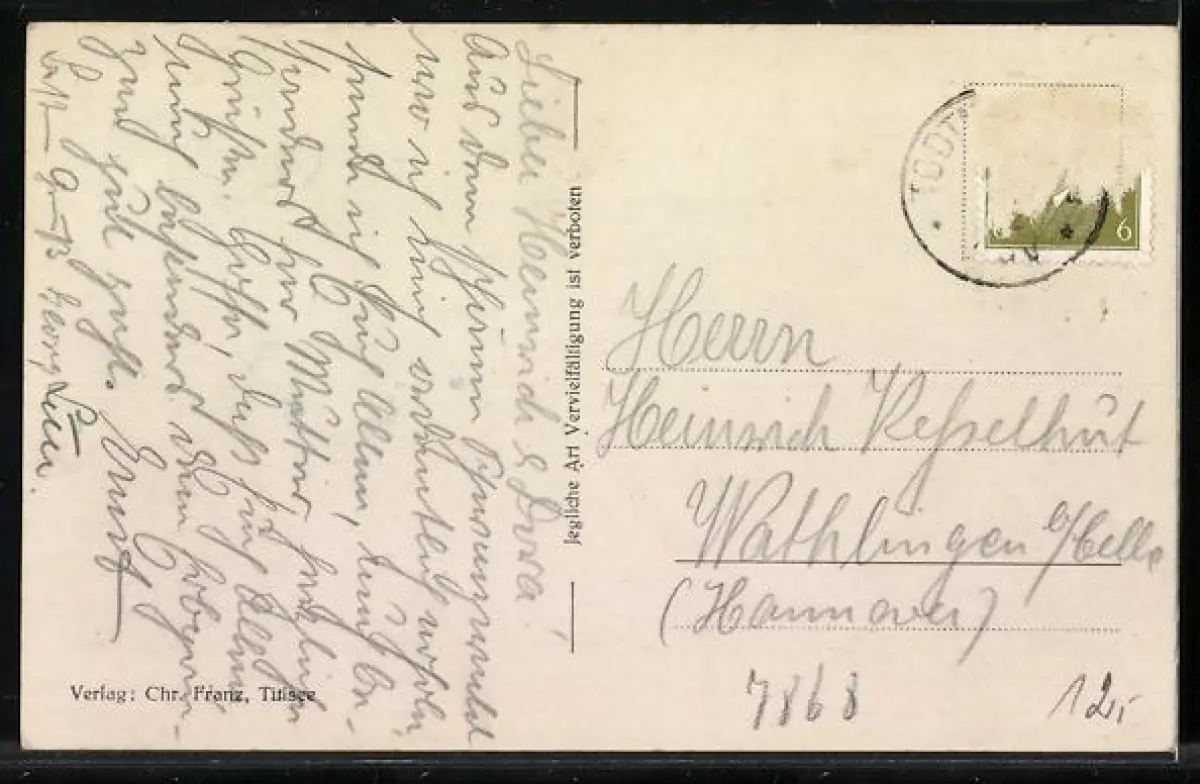alte Ansichtskarte, gelaufen, Briefmarke entfernt, guter Zustand